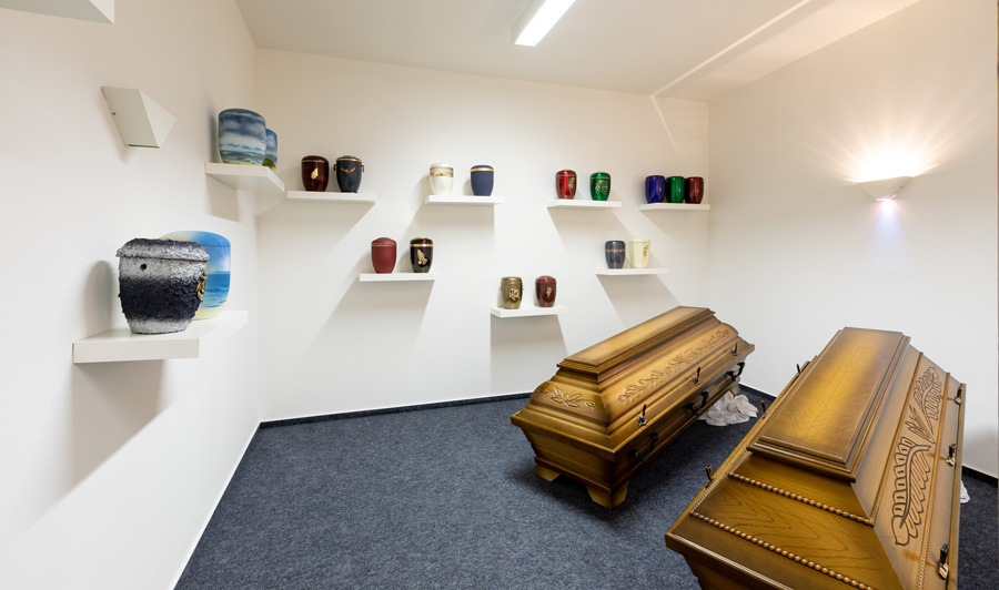 Bereitstellung von Särgen, Deckengarnituren, Sterbewäsche und Schmucküberurnen